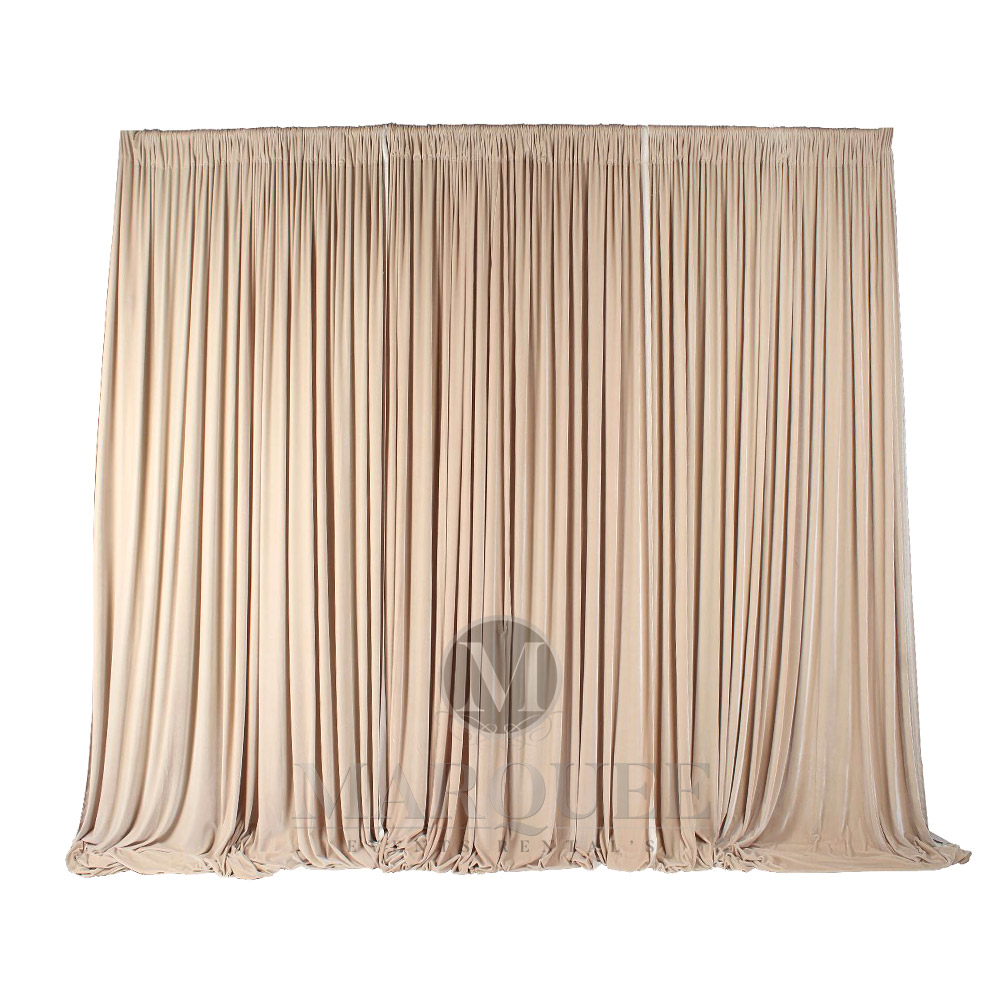 This drapery comes in velvet material in champagne color. We carry an assortment of draperies in various colors and materials to fit your needs. Contact us for more details.