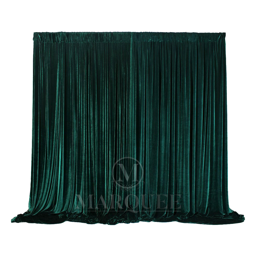 This drapery comes in velvet material in emerald green color. We carry an assortment of draperies in various colors and materials to fit your needs. Contact us for more details.