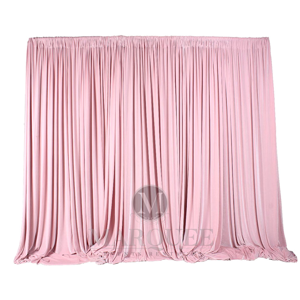 This drapery comes in velvet material in pink color. We carry an assortment of draperies in various colors and materials to fit your needs. Contact us for more details.