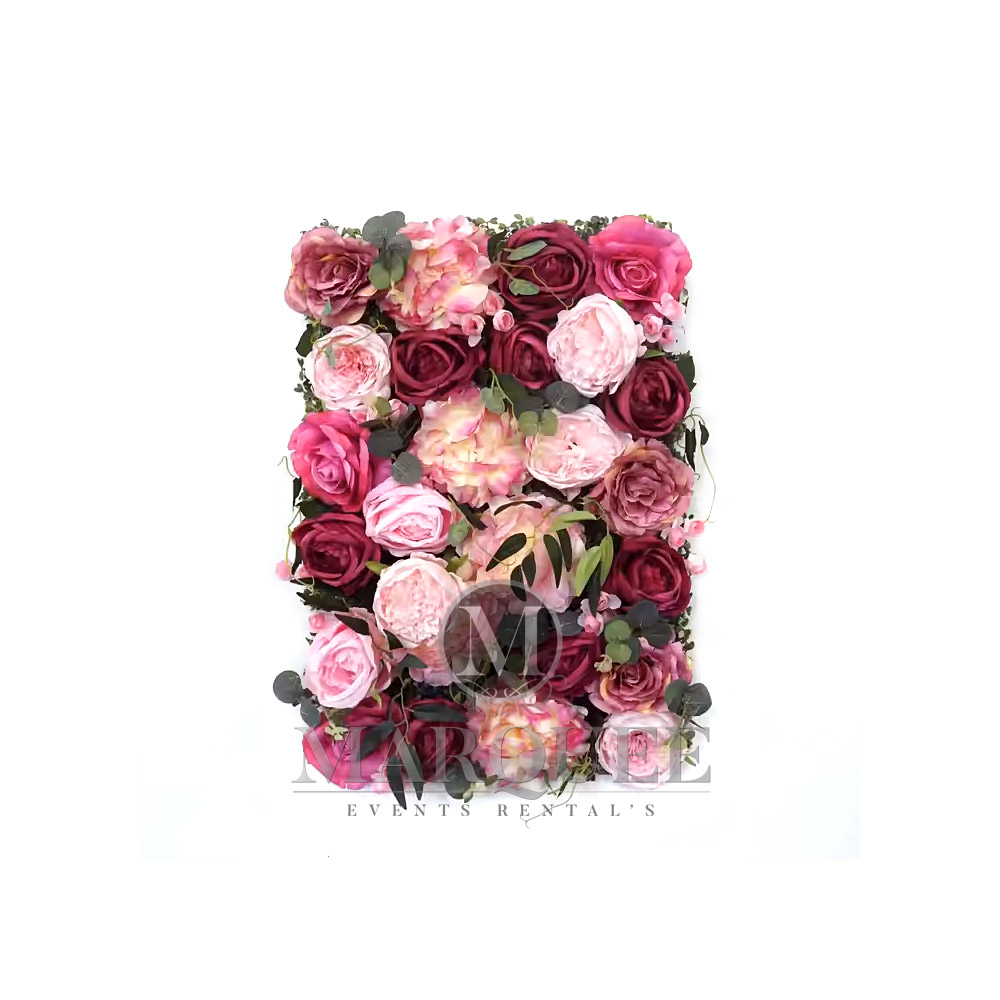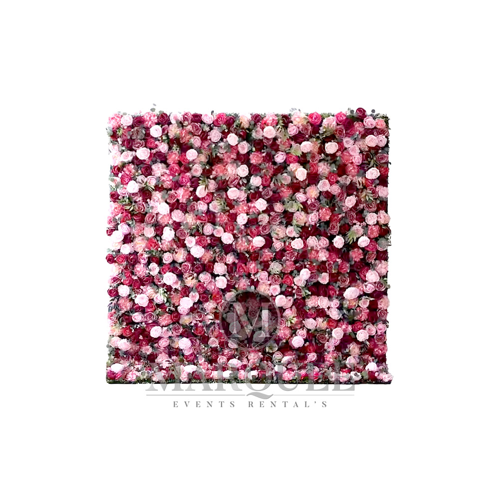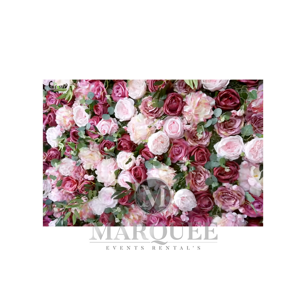 Pink flower wall. We can create flower walls in various colors. Please contact us and ask us about available colors.